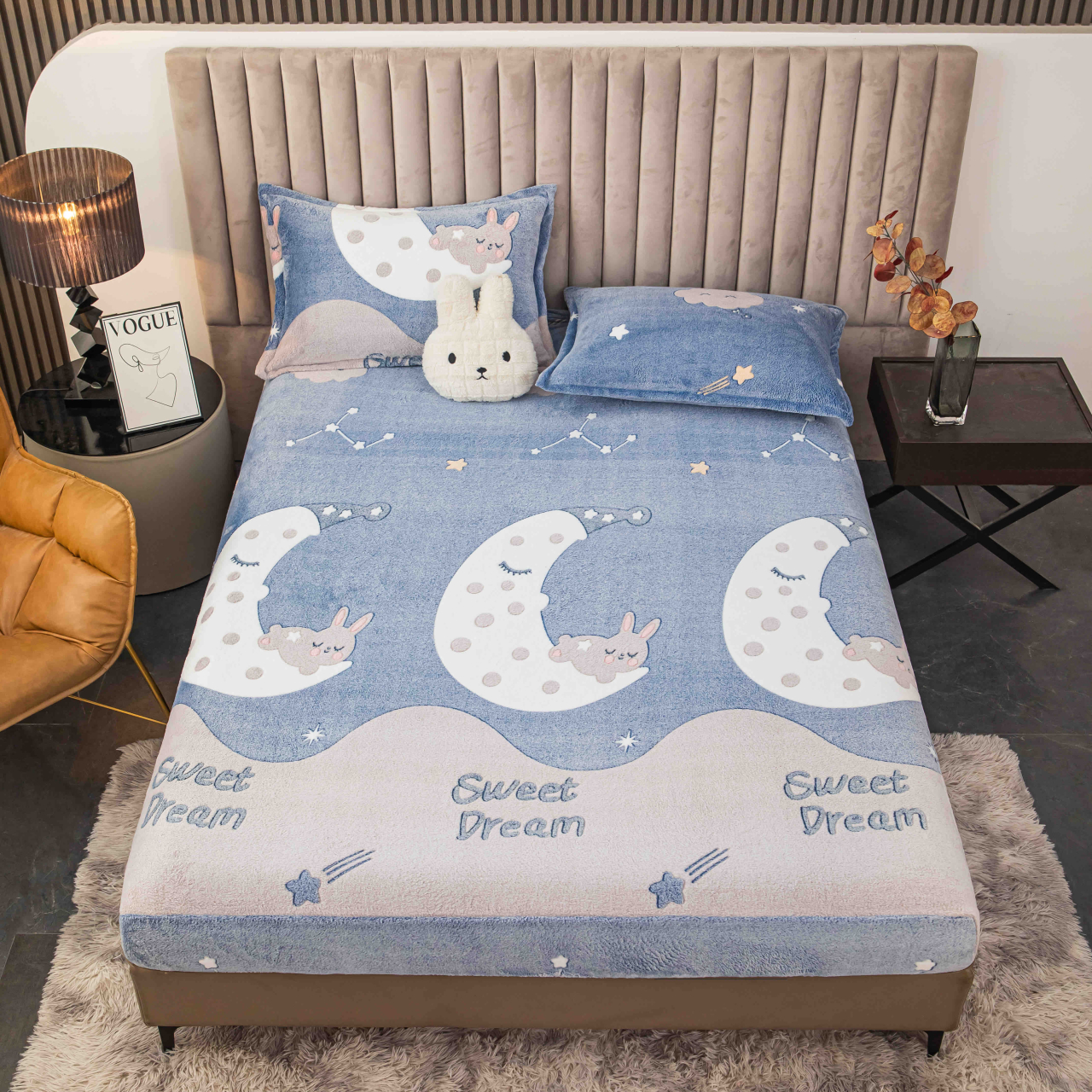 1 x husa de pat cu elastic din cocolino – potrivita pentru saltea 180x200 cm
