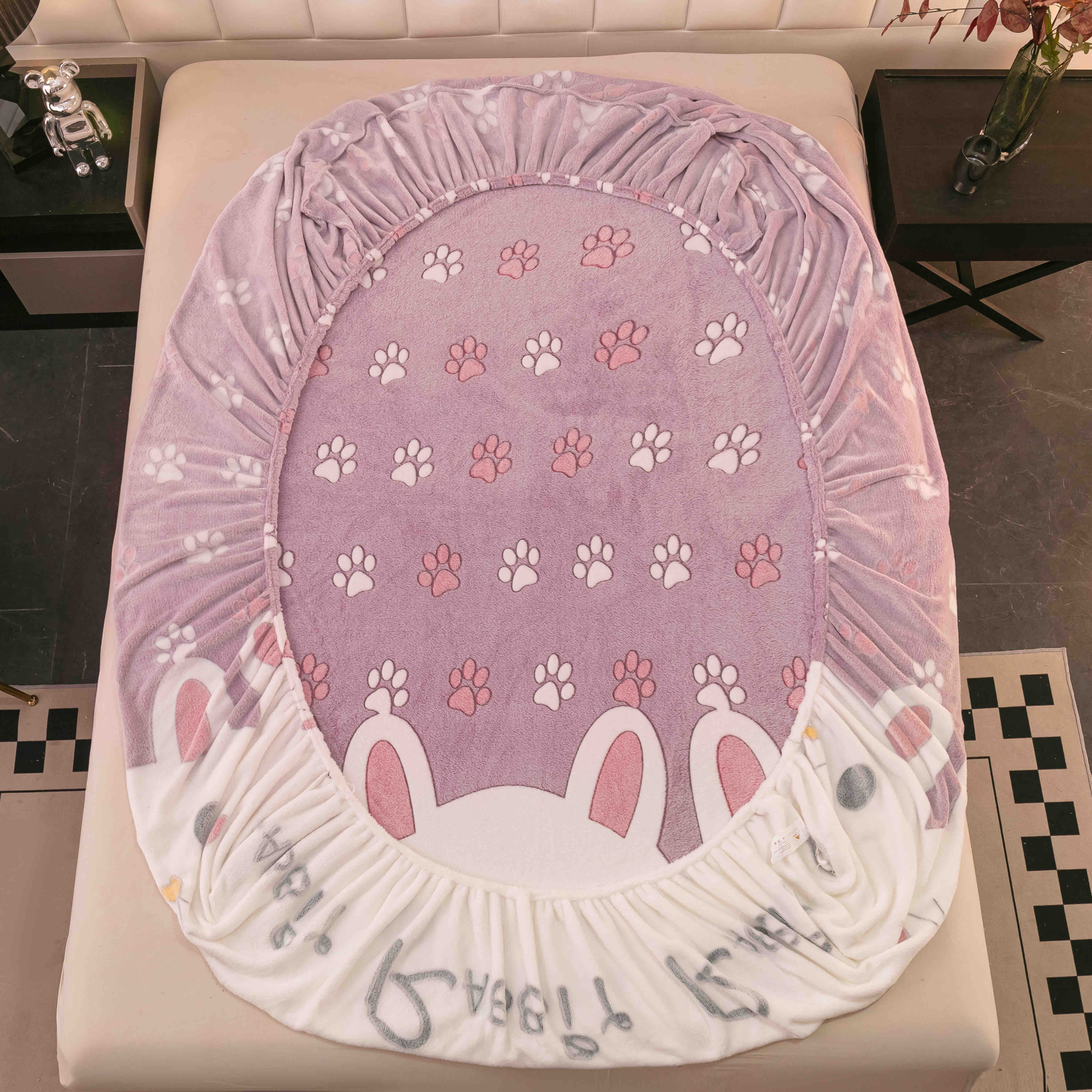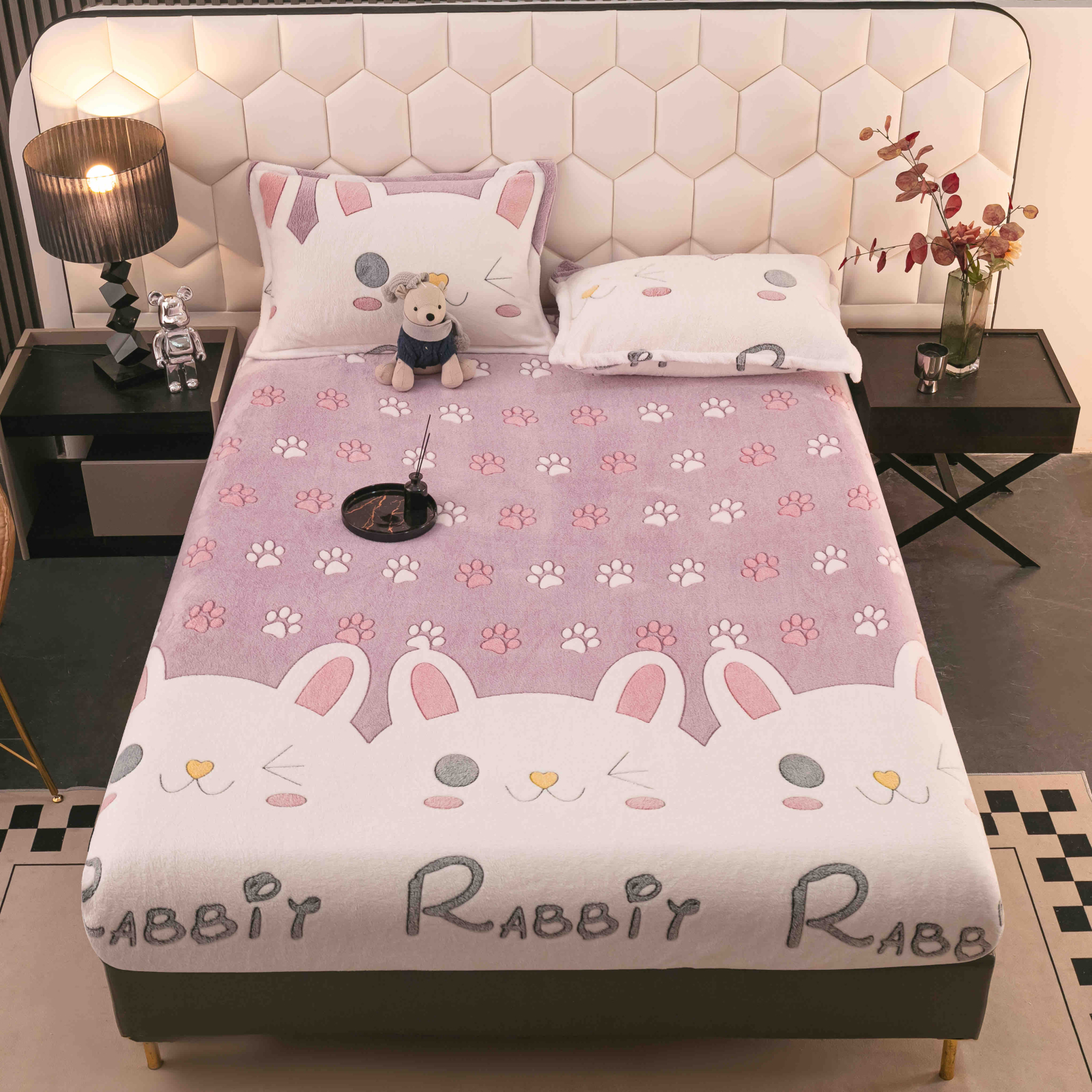 Pentru saltea 180x200 cm | Fete de perna 50x70 cm | Culoare crem | Imprimeu: iepurasi