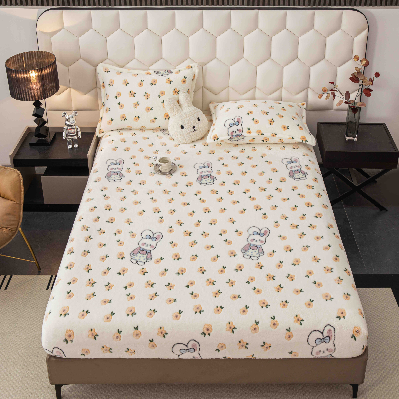 Pentru saltea 180x200 cm | Fete de perna 50x70 cm | Culoare crem | Imprimeu: iepurasi
