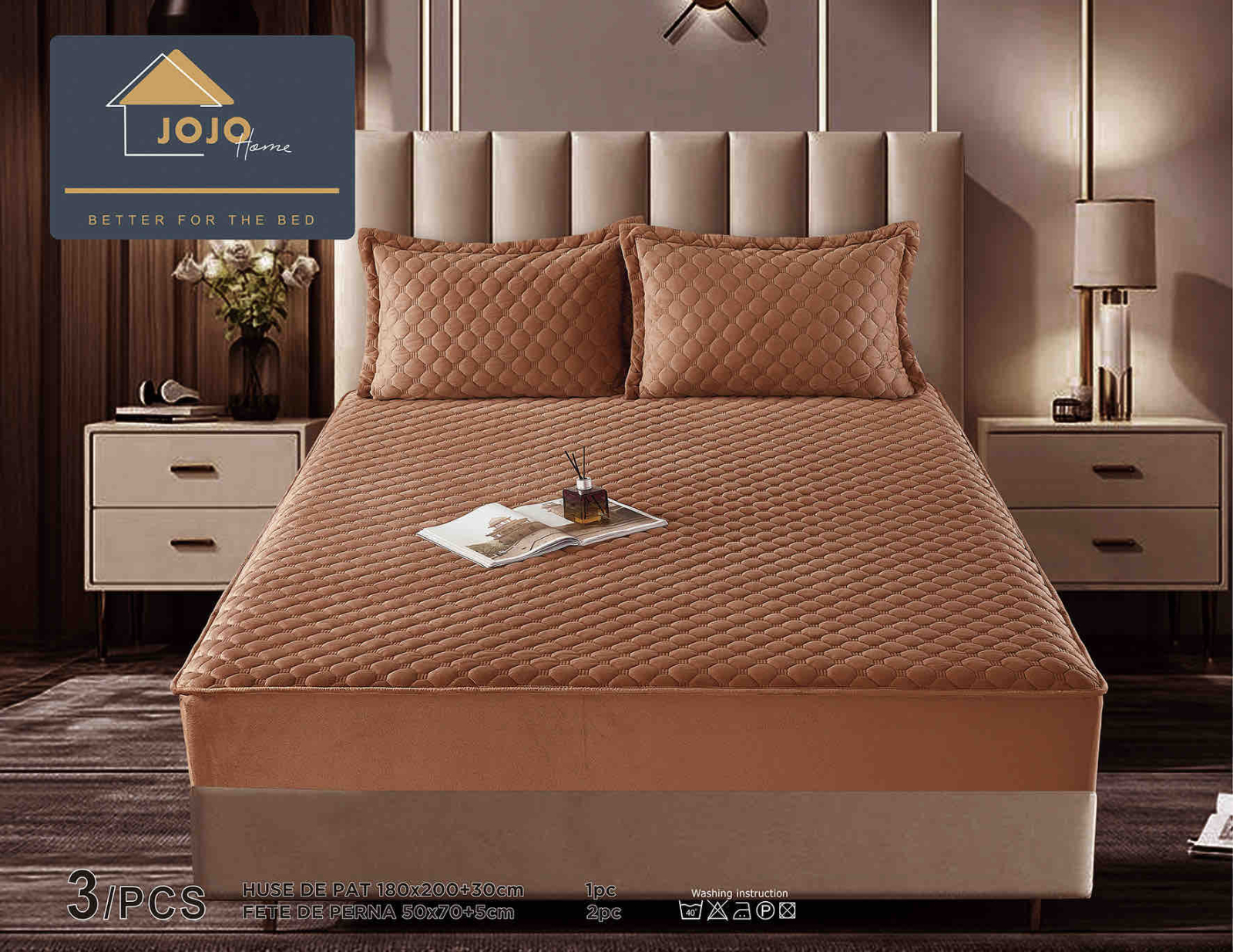 Husa de pat matlasata tip topper + 2 fete de perna 50x70cm,maro - D095