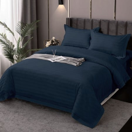 Lenjeria de pat bleumarin Ralex Pucioasa este realizata din 80% polyester si 20% bumbac, tip tesatura damasc striat (cu dungile inguste 1cm) fiind considerat cel mai potrivit pentru hoteluri si pensiuni, cu utilizare frecventa. Aceste lenjerii sunt confectionate dintr-un damasc fin, satinat, 100% mercerizat si sanforizat si au un aspect lucios ceea ce le confera eleganta, un grad ridicat de delicatete la atingere precum si rezistenta la folosire si spalari repetate. Pentru somnul calduros si odihnitor la care ai visat alege lenjeriile elegante din damasc satinat disponibil in mai multe culori. Sunt foarte comode si usor de intretinut.
