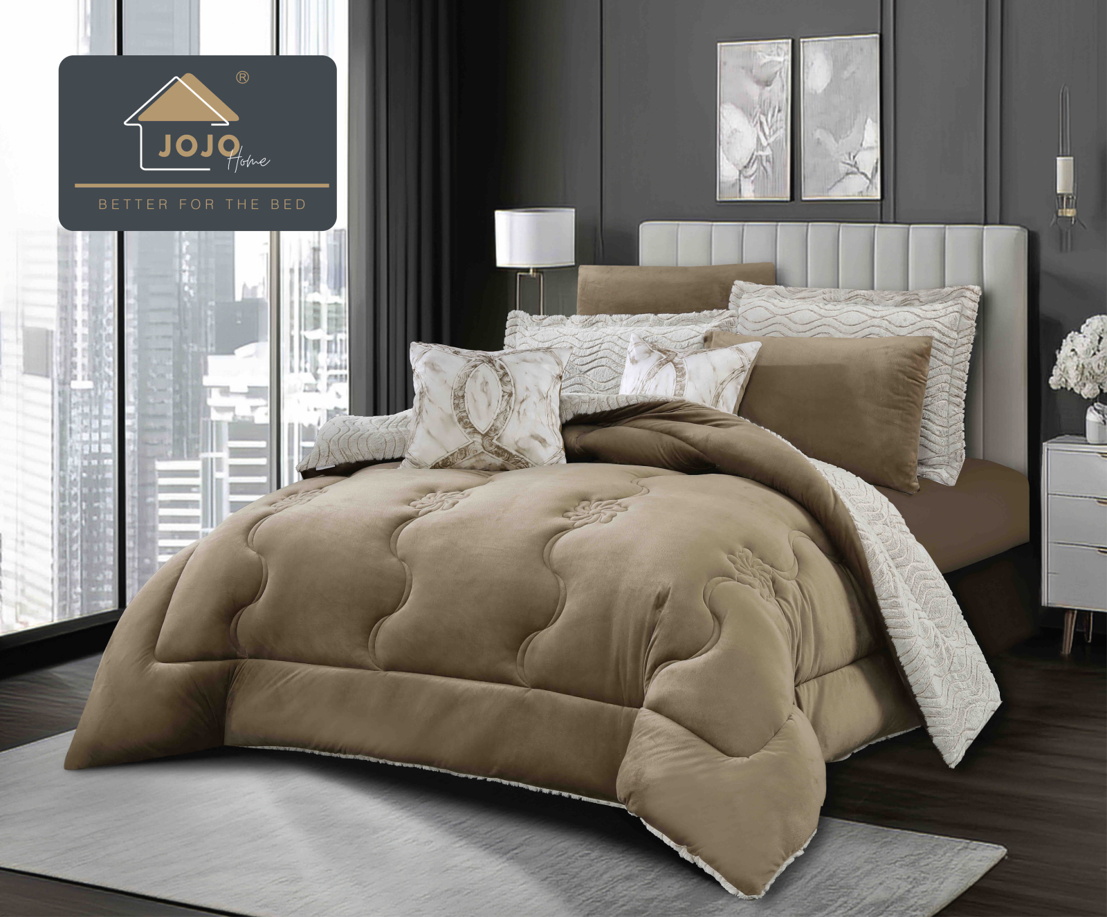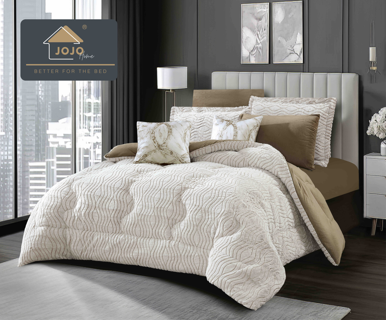 Descoperă rafinamentul și confortul absolut cu setul complet de lenjerie de pat din catifea Jojo Home, în nuanțe calde de maro și crem. Creat pentru a aduce luxul și armonia în dormitorul tău, acest set este combinația perfectă între eleganță, finețe și funcționalitate.