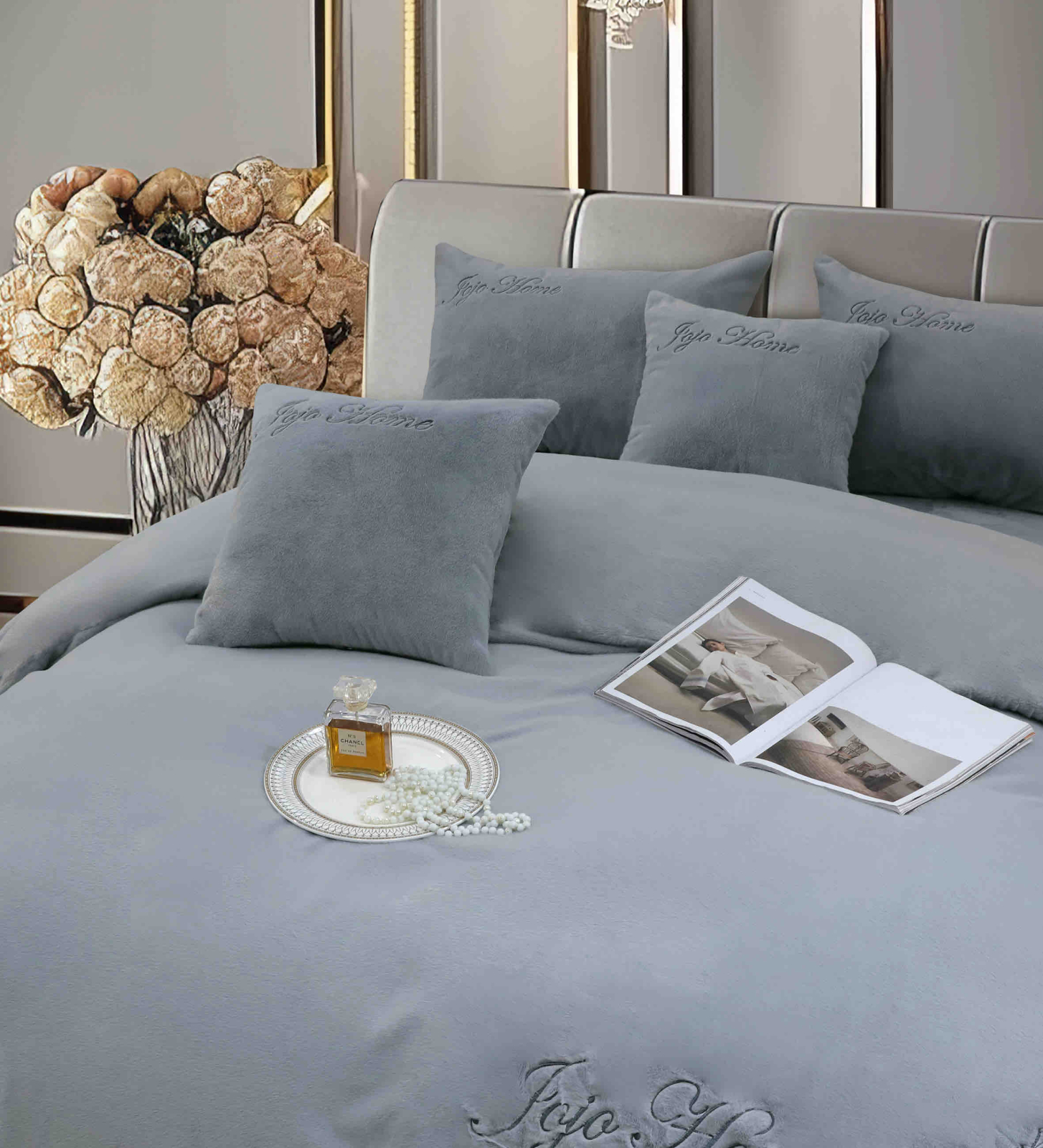 Designul uni, in nuanta gri deschis, este accentuat de broderia discreta Jojo Home, conferind un aspect rafinat si curat, usor de integrat in orice stil de amenajare interioara.