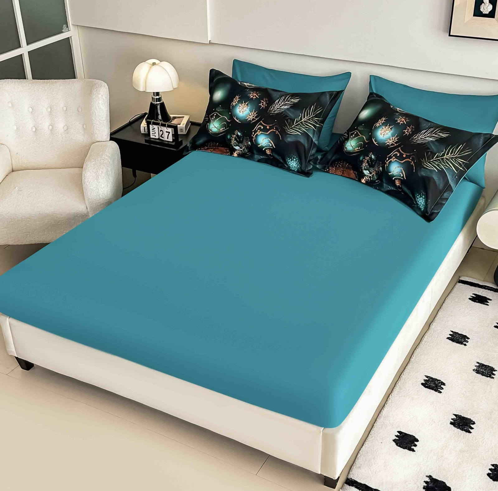 Adu eleganța sărbătorilor în dormitorul tău cu această lenjerie de pat 5D din finet premium, decorată cu globuri strălucitoare în nuanțe de turcoaz și auriu pe fundal negru intens. Imprimeul realist oferă un efect vizual spectaculos, transformând patul într-un decor de poveste.