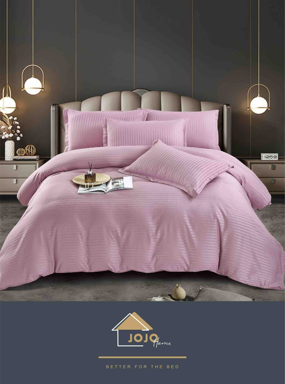 Materialul din damasc satinat are un aspect fin si usor lucios, oferind un plus de rafinament dormitorului. Textura este delicata la atingere, placuta pentru piele, dar in acelasi timp rezistenta la spalari repetate, pastrandu-si forma si culoarea in timp.