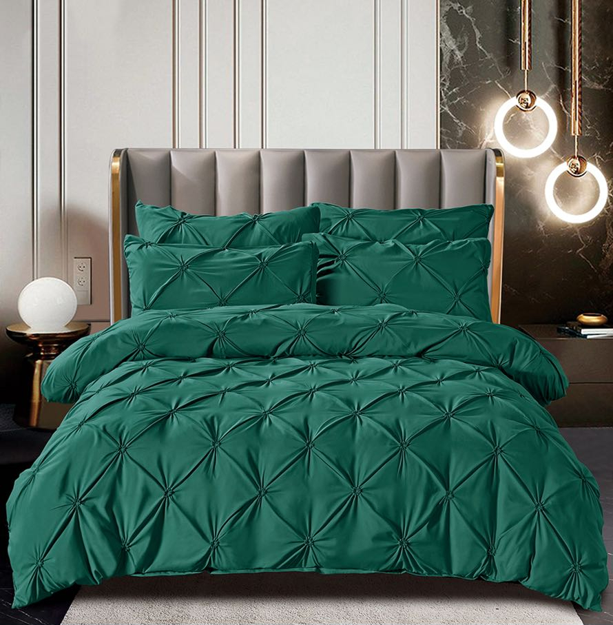 Lenjerie pat dublu cu pliuri,cearceaf cu elastic,bumbac finet,6 piese,verde smarald-A769  + CADOU
