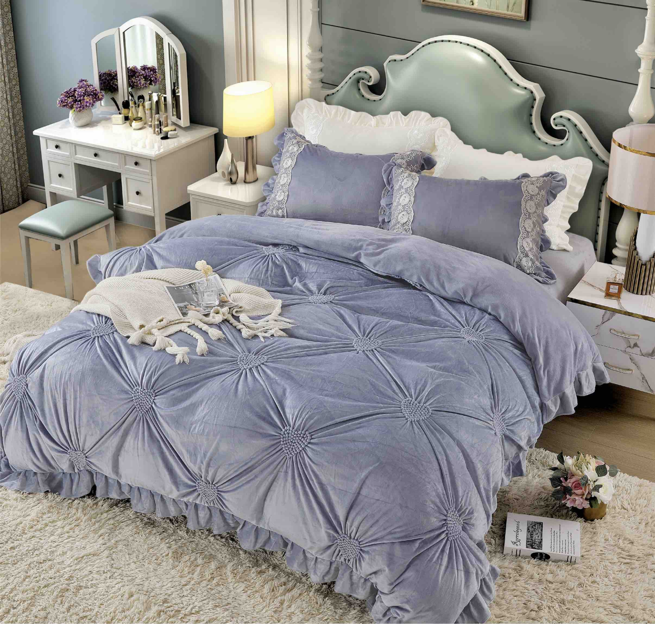 Lenjerie de pat din catifea cu 4 piese gri deschis – eleganta intensa si confort desavarsit