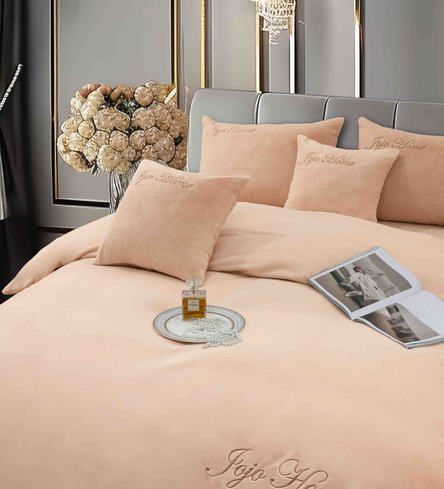 Designul uni, in nuanta bej piersica, este accentuat de broderia discreta Jojo Home, conferind un aspect rafinat si curat, usor de integrat in orice stil de amenajare interioara.