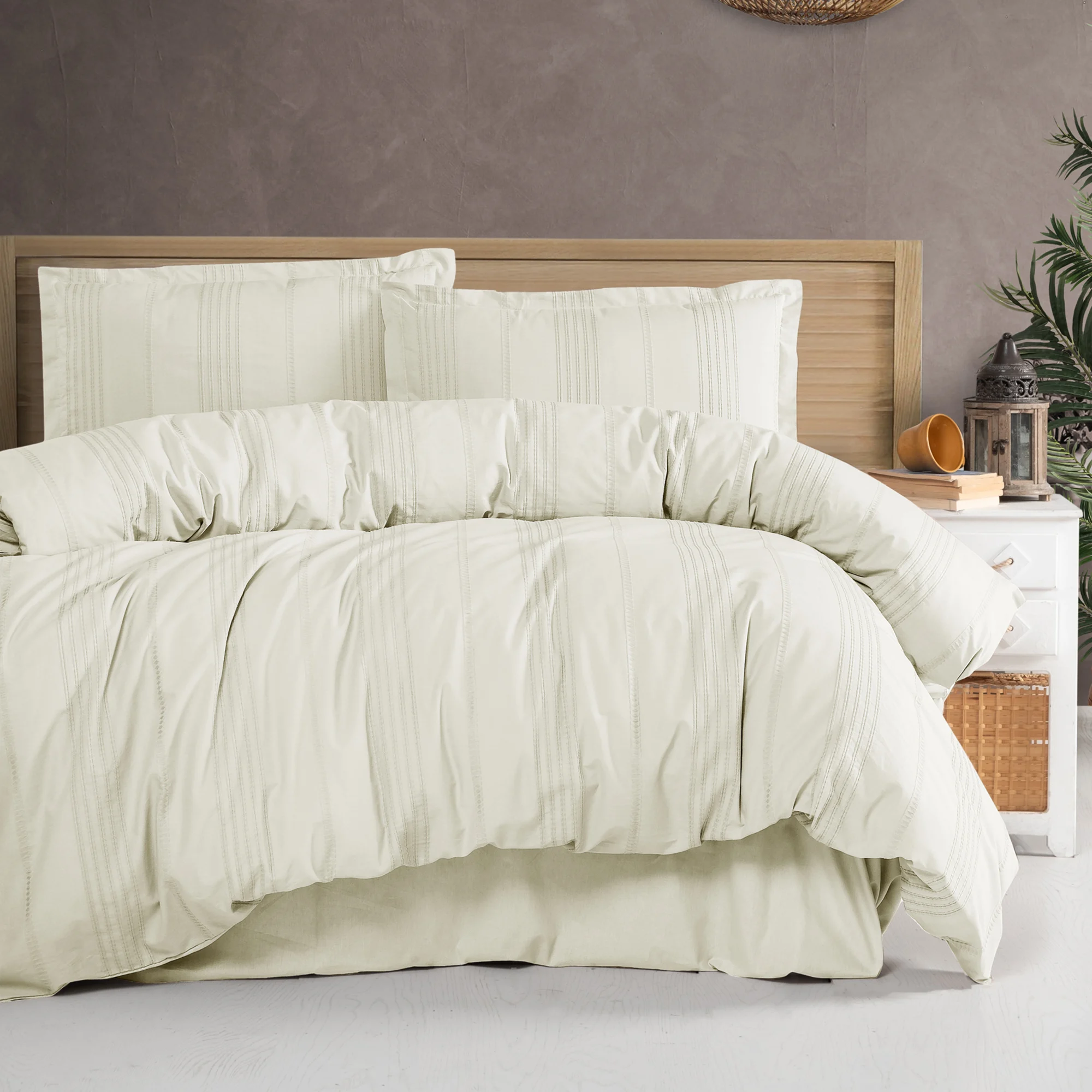 Lenjerie de pat din bumbac ranforce crem(Arakis V5) pentru pat dublu,formata din 4 piese(cearceaf de pat fara elastic,husa pilota si 2 fete de perna),eleganta,simpla,perfecta pentru saltele cu dimensiunea de 160x200cm,180x200cm,200x200cm sau 200x220cm.