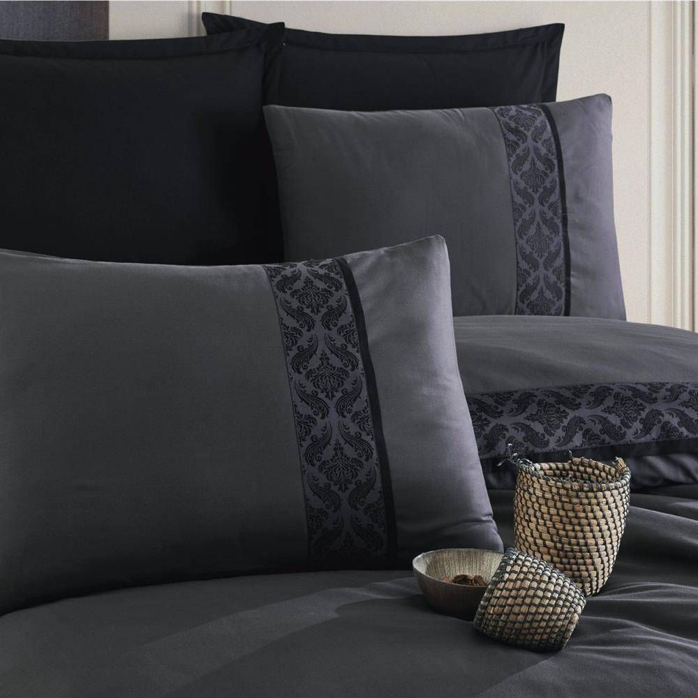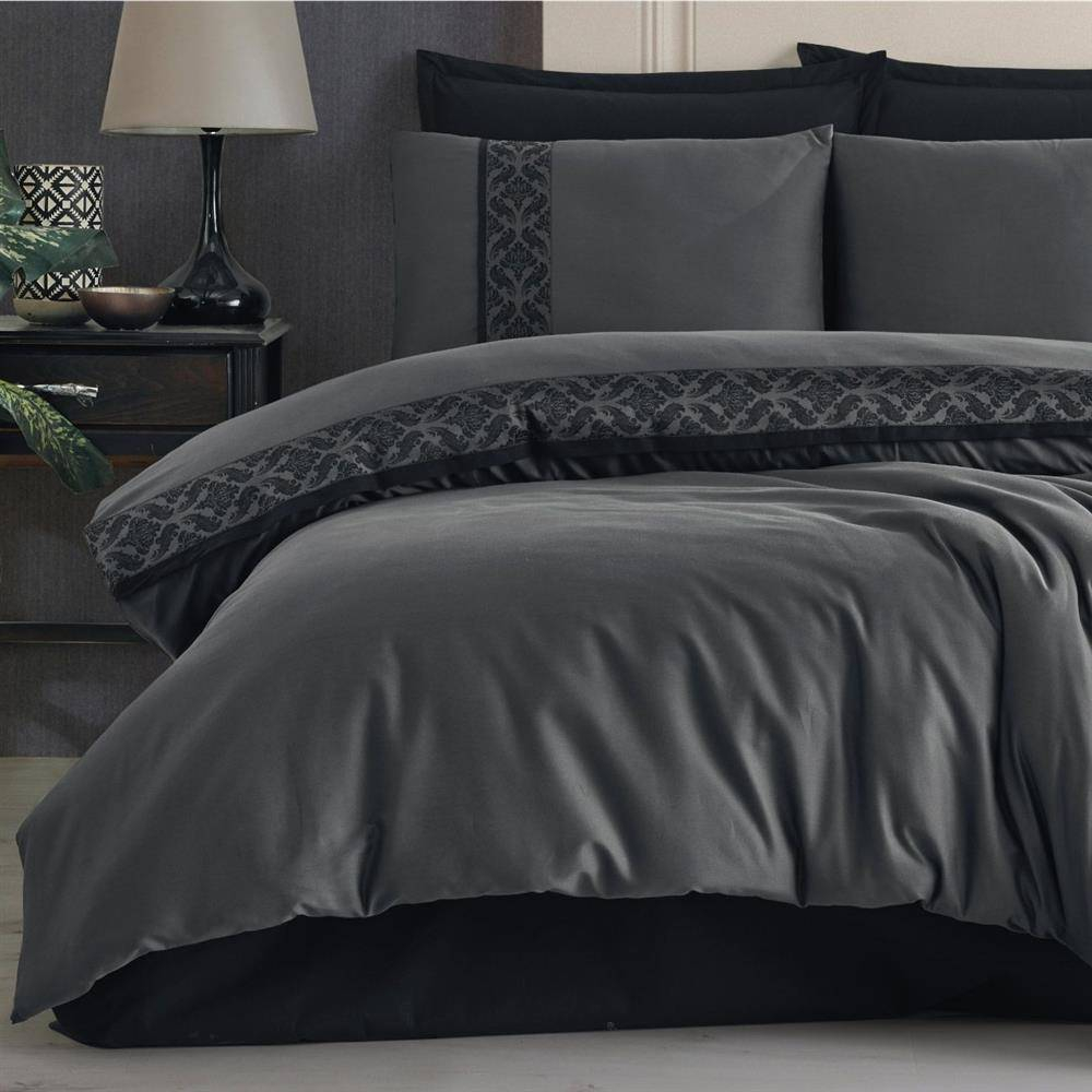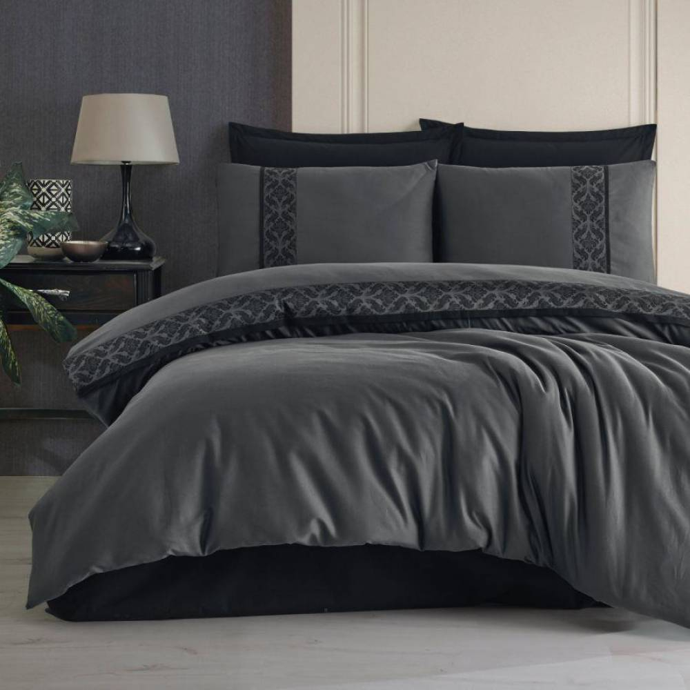 Lenjerie de pat din bumbac ranforce gri(NiennaV2) pentru pat dublu,formata din 4 piese(cearceaf de pat fara elastic,husa pilota si 2 fete de perna),eleganta,simpla,perfecta pentru saltele cu dimensiunea de