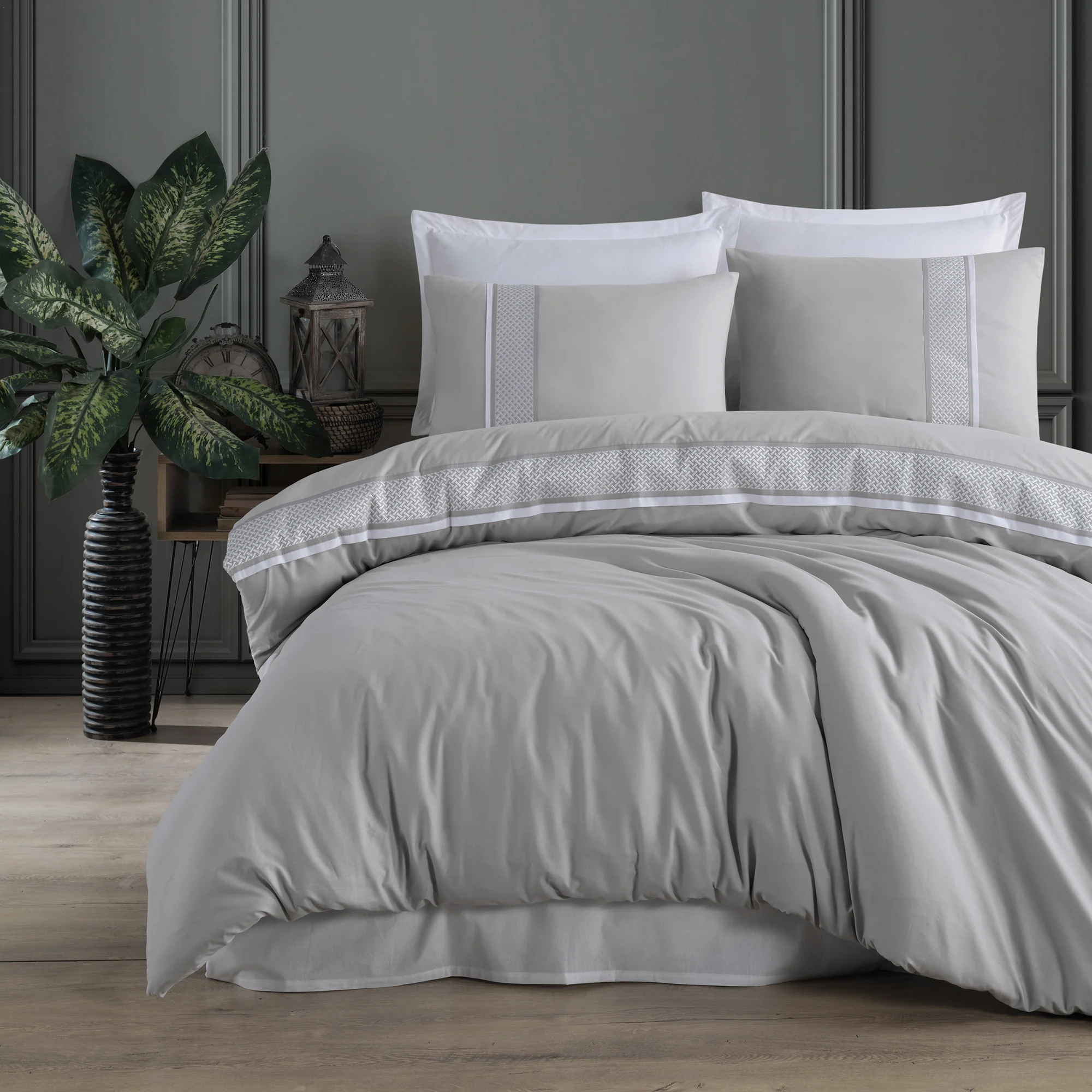 Lenjerie de pat din bumbac ranforce gri(Tulkas V1) pentru pat dublu,formata din 4 piese(cearceaf de pat fara elastic,husa pilota si 2 fete de perna),eleganta,simpla,perfecta pentru saltele cu dimensiunea de 160x200cm,180x200cm,200x200cm sau 200x220cm.