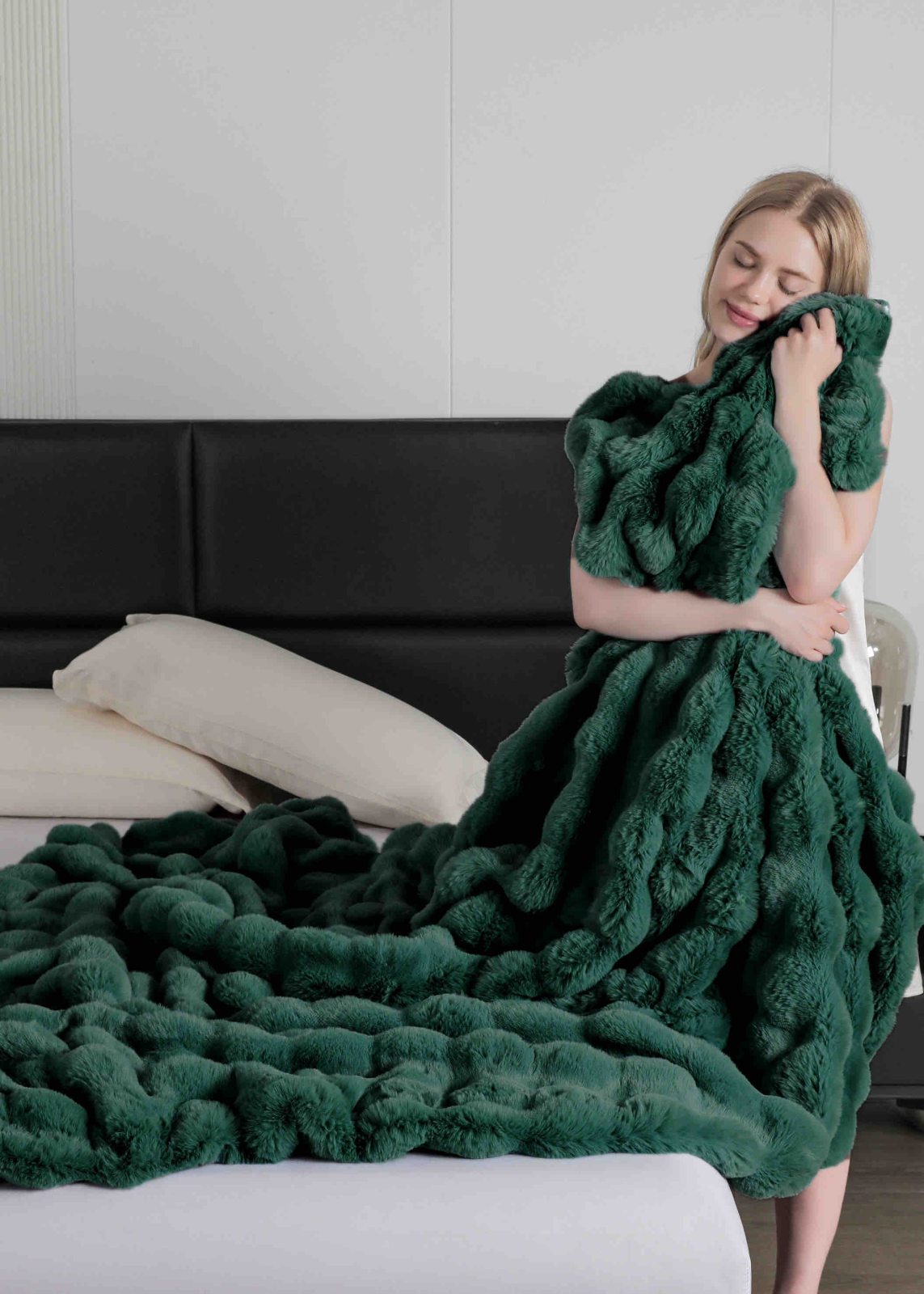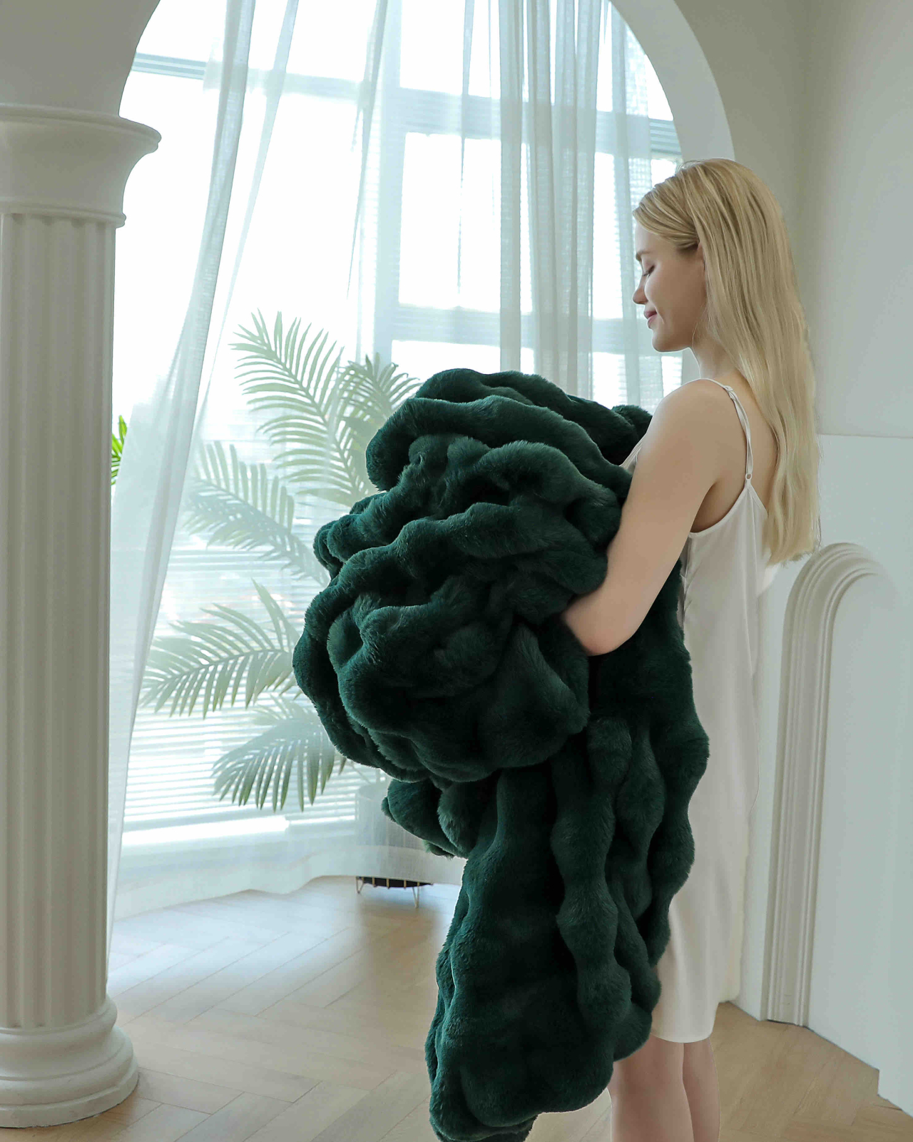 Transformă-ți spațiul de relaxare cu patura cocolino de lux din blana artificiala de iepure verde smarald, o piesă esențială pentru orice dormitor sau living. Cu dimensiuni generoase de 200 x 230 cm, această patură nu doar că îți va oferi căldură, dar va adăuga și un strop de eleganță decorului tău.