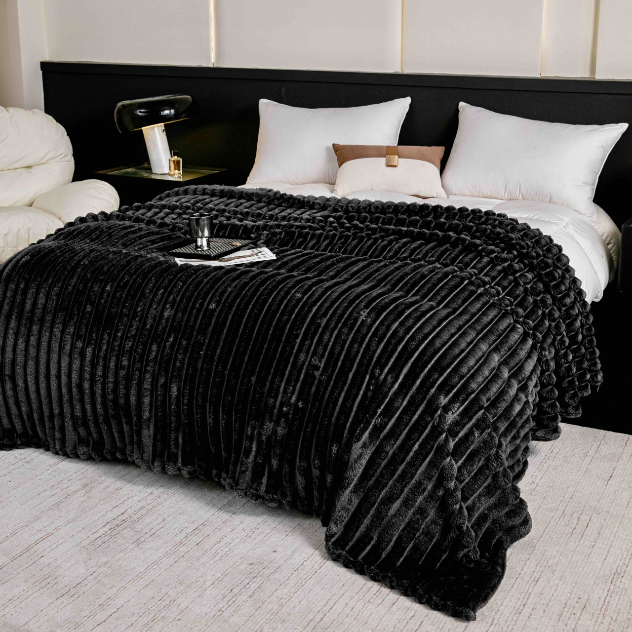 Pătură Cocolino Gofrată Neagra Jojo Home 200x230cm - Eleganță și Confort în Fiecare Fir
