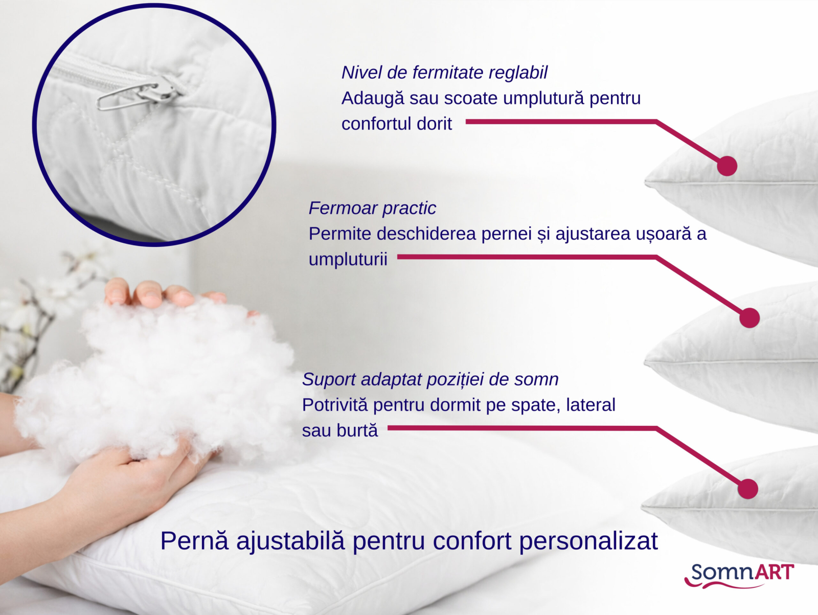 Conceputa pentru a permite reglarea nivelului de fermitate, aceasta iti ofera posibilitatea de a ajusta cantitatea de umplutura in functie de pozitia preferata de dormit si de confortul dorit.