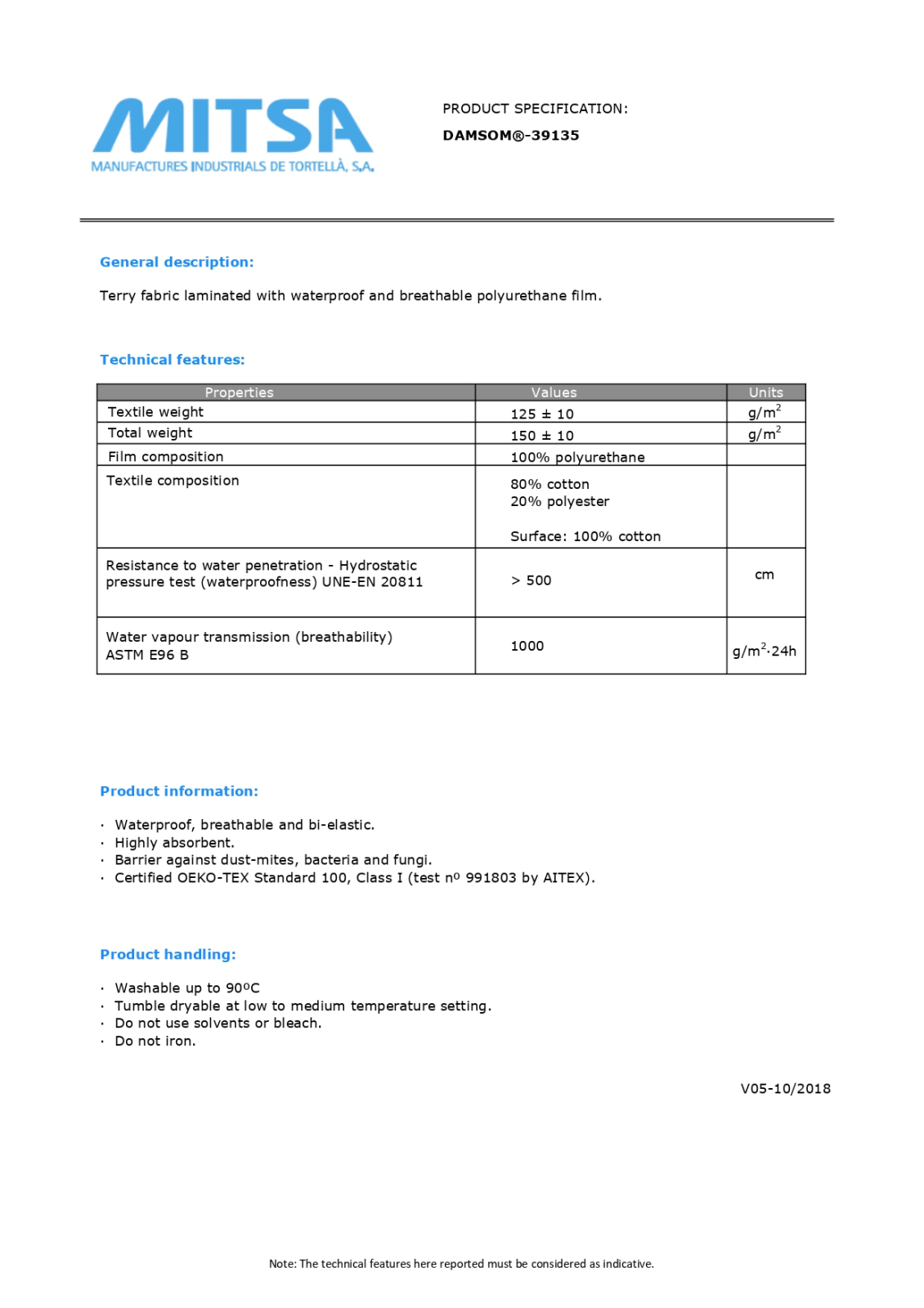 - membrana impermeabila aplicata pe dosul materialului este aderenta - de aceea protectia nu aluneca pe saltea