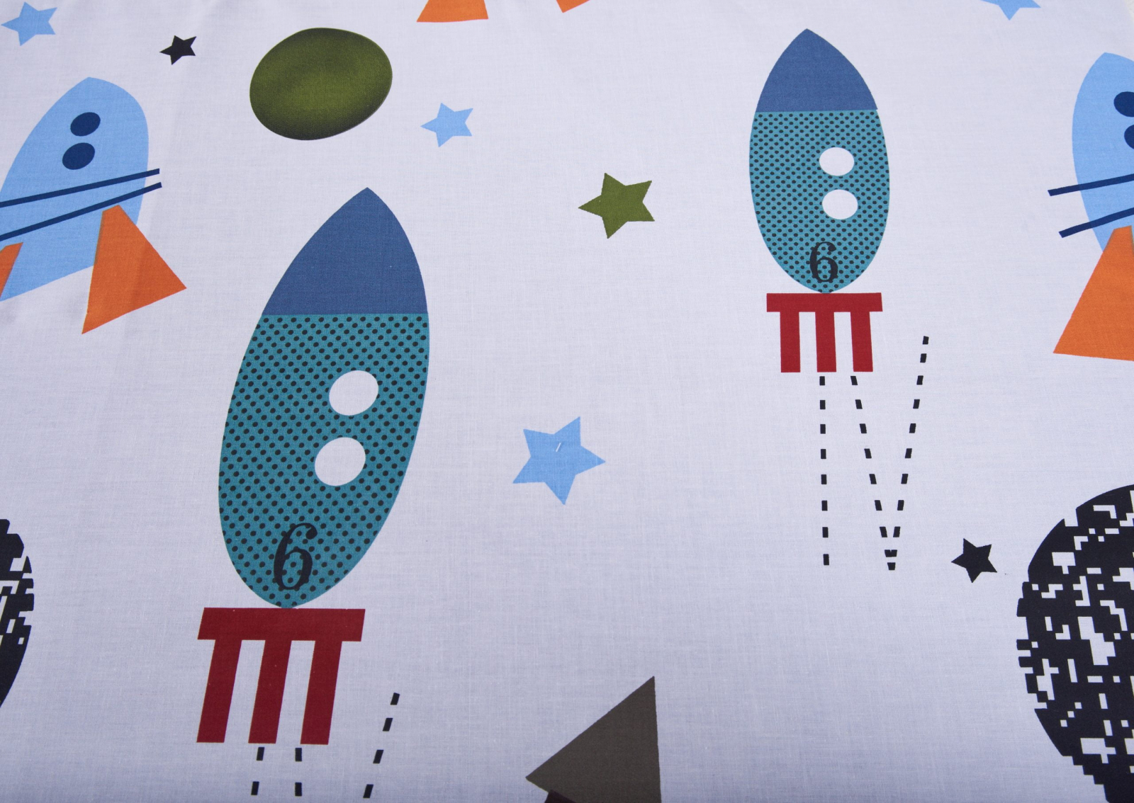 Saltea cu memorie Somnart Memory 60x120, înălțime 10 cm, pentru bebeluși și copii, husă impermeabilă, fermitate medie, model rachete