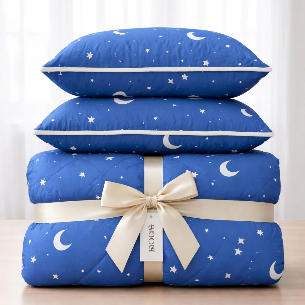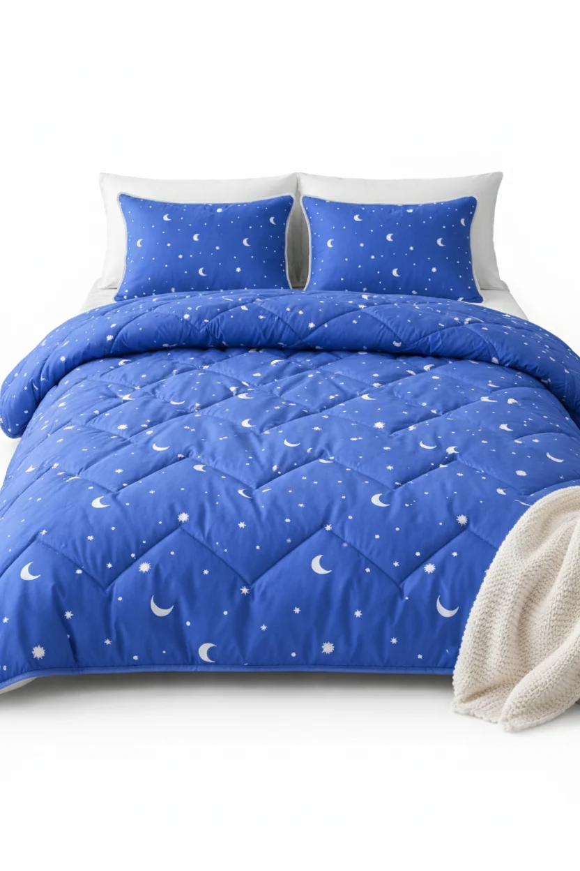 Set pilota si perne,model cu luna si stele,culoarea albastru compus din: